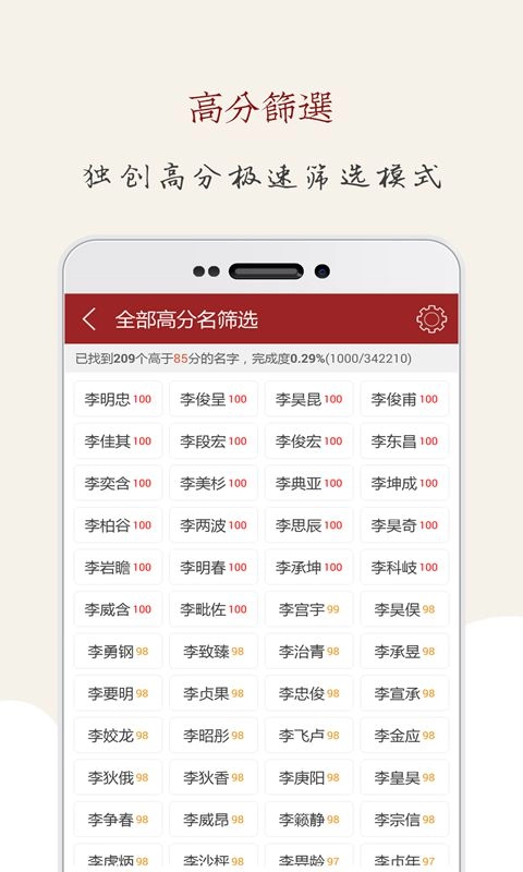应用会根据评分对客户的名字开展筛选工作,从中挑选出评分较高的名字。