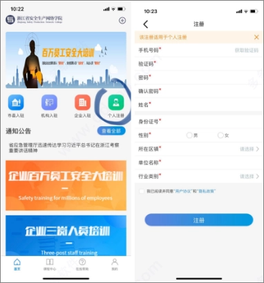 用户可通过“个人注册”入口进行注册,单位名称为必填项,若无单位请填写“无”。填写完成所有必要信息后,即可完成注册。