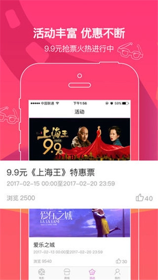 中国电影通每周推出低至19.9元的抢票活动,期待您的参与。