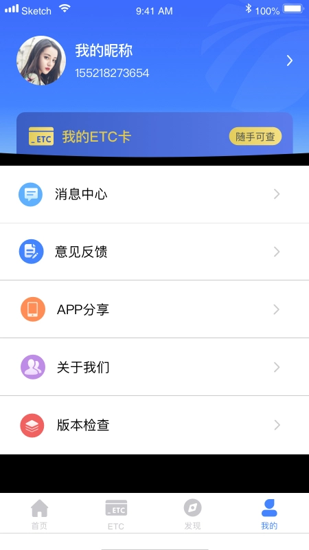 点开我的,可以查看我的ETC卡、消息等。