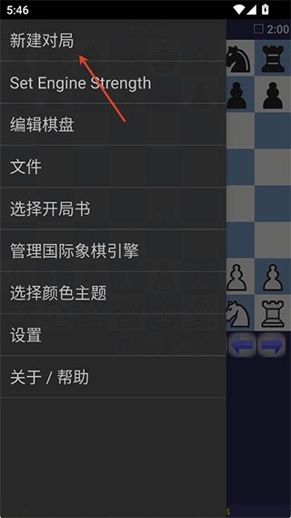 打开应用后,点击左上角的菜单按钮,选择新建对局。你可以选择与引擎对弈,或加载已保存的棋局。