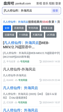 盘库吧是一款高效且资源丰富的网盘搜索工具,整合了阿里云盘、百度网盘、夸克网盘、迅雷云盘等主流网盘平台的内容。无需在不同网盘应用间频繁切换,就能便捷地查找并获取各平台的海量资源,帮你节省时间和精力,让资源搜索过程变得既高效又轻松。