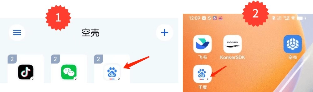 选择应用; 选择要分身的应用(如百度)。