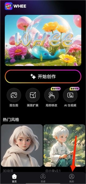 打开whee软件后在首页点击图生图