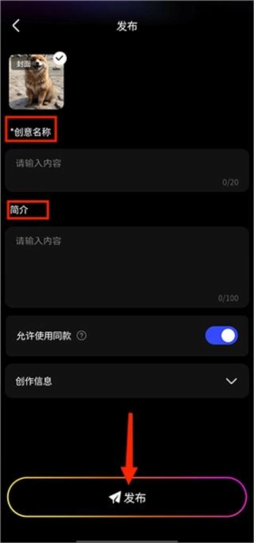 进入作品详情页点击发布