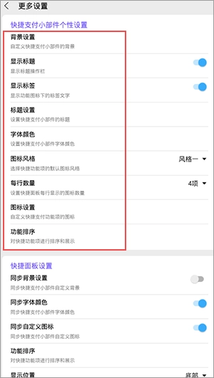 在快捷支付小部件的设置界面中,你可以对图标隐藏、触感反馈、支付宝口令、主题风格等选项进行设置。