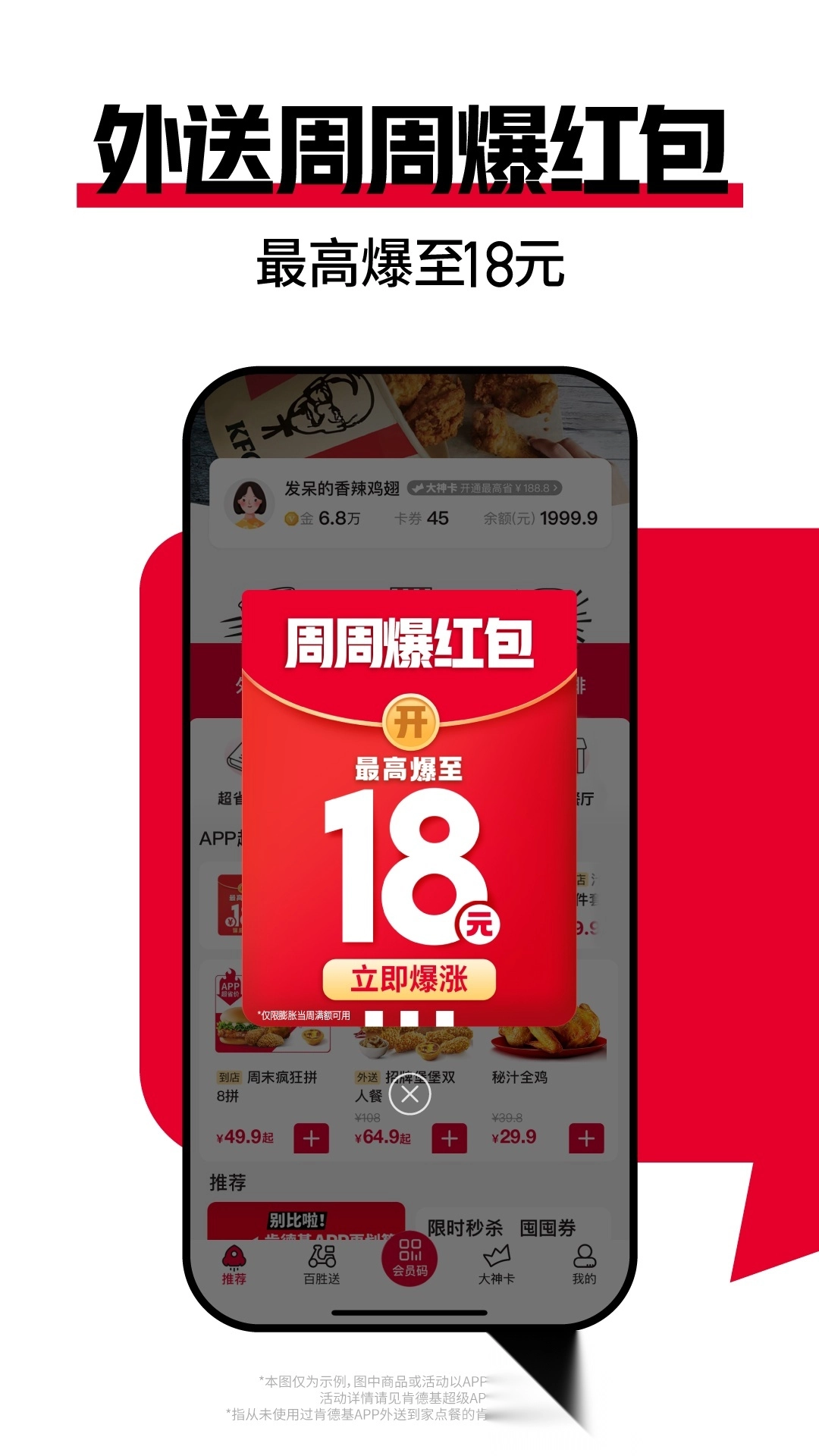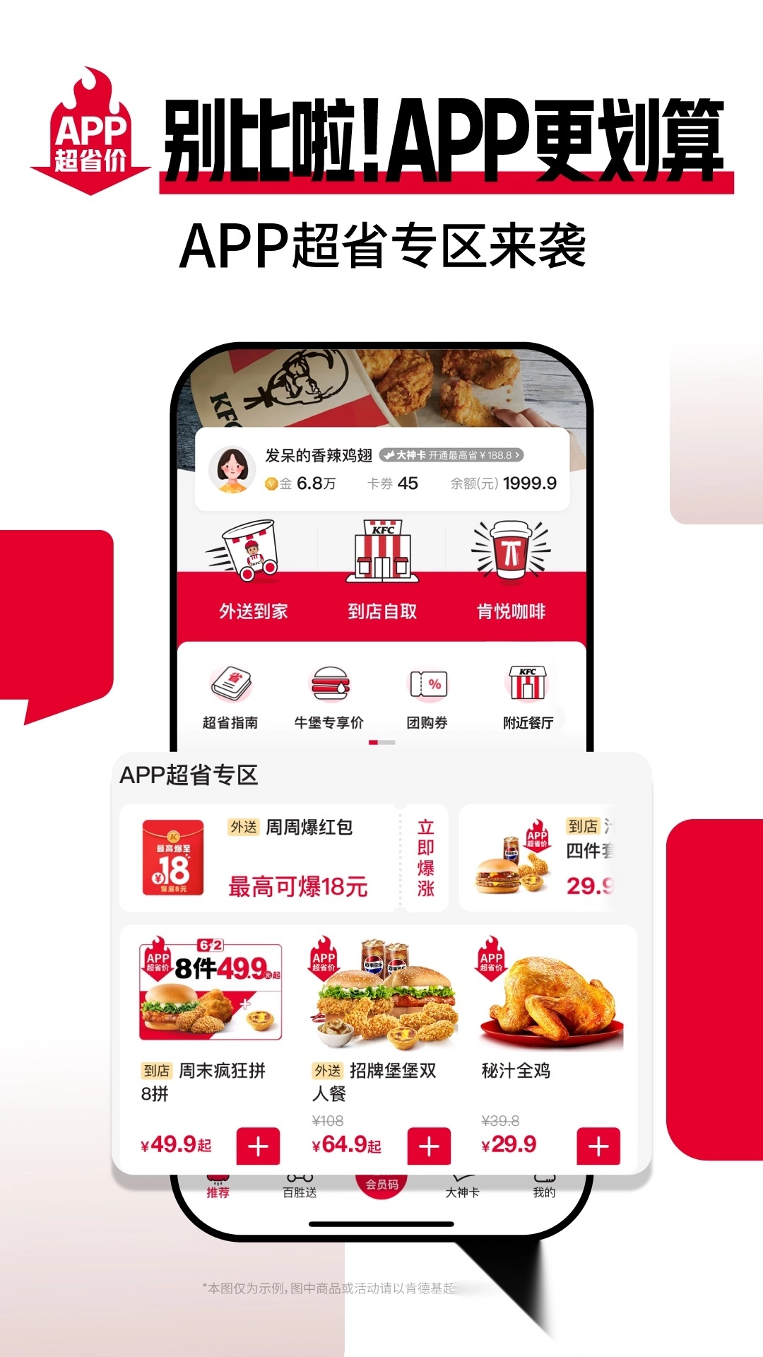 肯德基大神卡包含三大核心权益:早餐权益、下午茶权益以及免外送费权益。