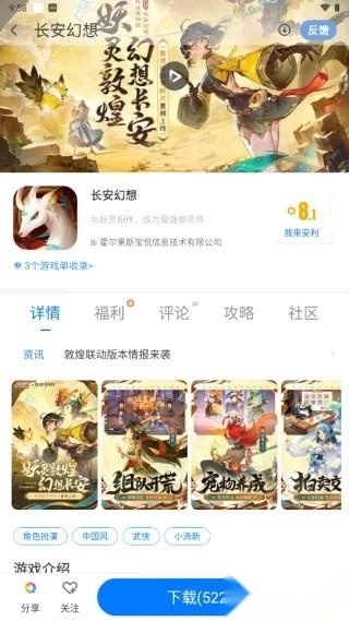 你可以直接点击上图中框出的位置,要是想了解更多游戏资讯,也可以点击《长安幻想》,进入游戏详情页面查看。