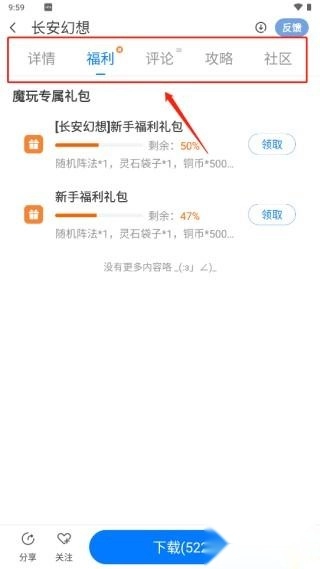 可以查看《长安幻想》的游戏资讯、福利活动以及相关攻略内容