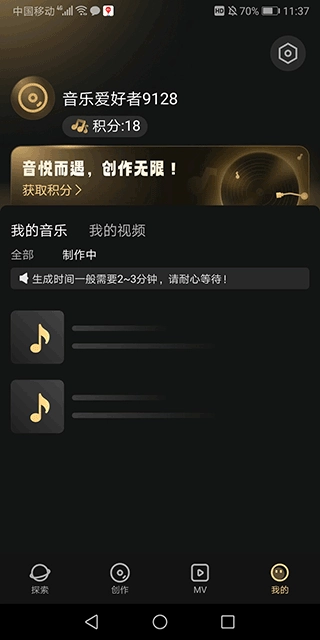 等待音乐的生成。