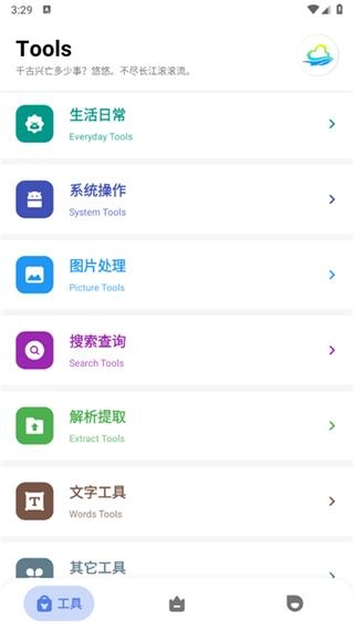 适用场景观,这里的尺子、字典、指南针、打字板、画板和景点查询等工具可适用于各类场景。