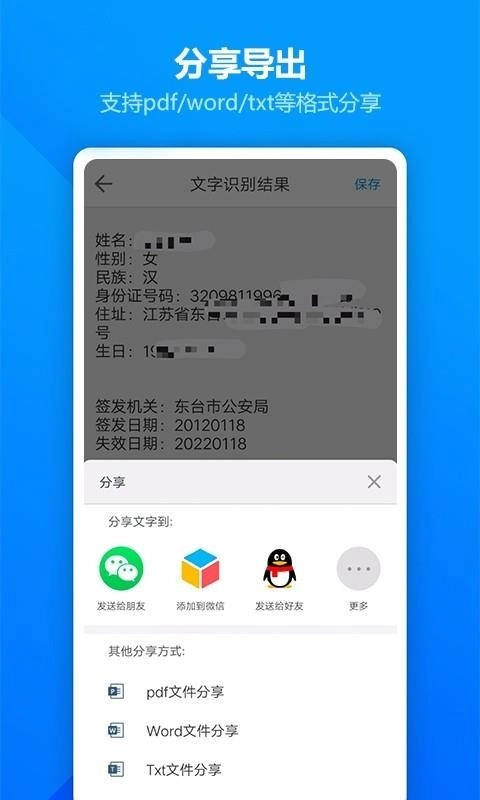 文字识别得到的内容能够保存到第三方软件里,并且可以随时进行转发。