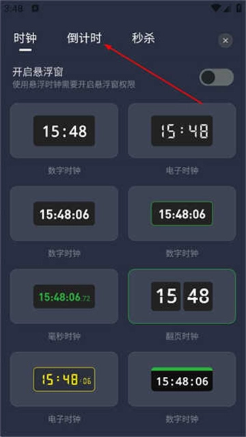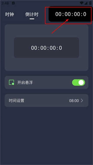 进入悬浮时钟页面后,点击倒计时标签,就能切换到倒计时操作界面。