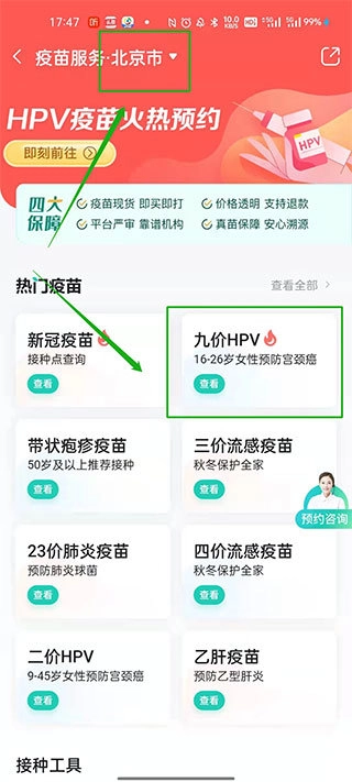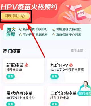 预约页面(务必订阅到苗提醒,参与限量抢购四价与九价HPV疫苗)
