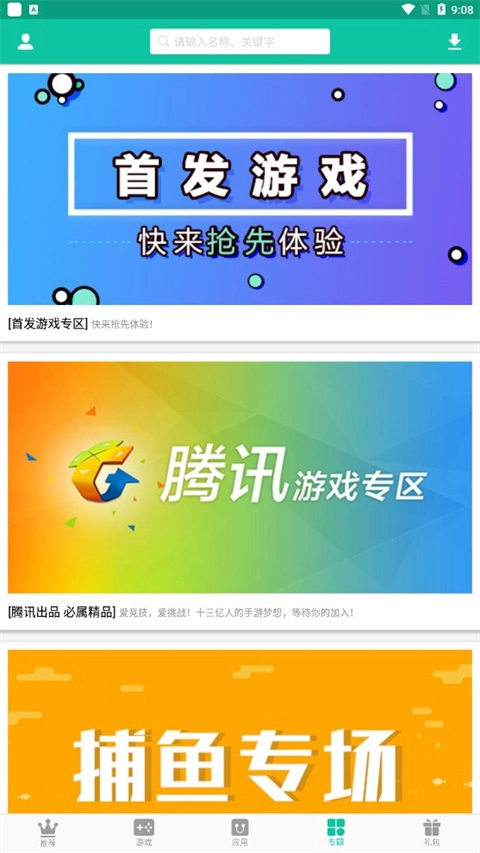 专题页面:在这里可以抢先体验腾讯的首发游戏,还能争取热门游戏的测试资格。