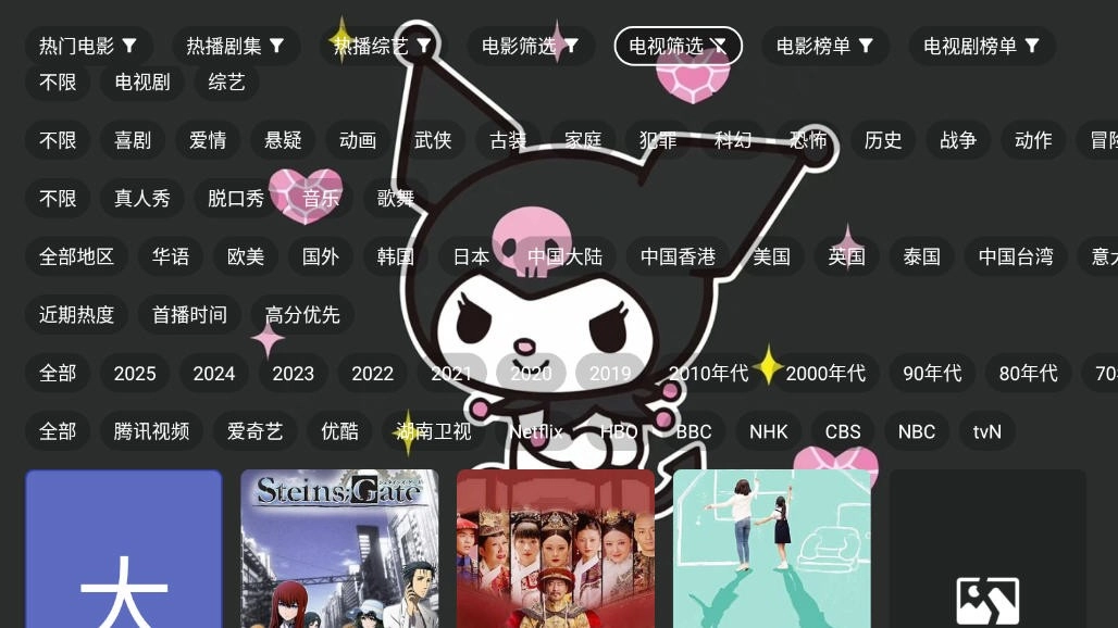 酷洛米影视TV是一款免费的追剧应用,汇聚了丰富的国内外影视资源,涵盖电影、电视剧、综艺和动漫等多种类型。它支持高清播放,还具备关键词搜索、离线缓存、收藏与历史记录、多线路切换等实用功能,资源更新速度快且播放稳定,方便各类影视爱好者随时观看。无论是热门的院线新片,还是经典的港剧、美剧、韩剧,亦或是小众的纪录片和动漫,在这里都能找到。