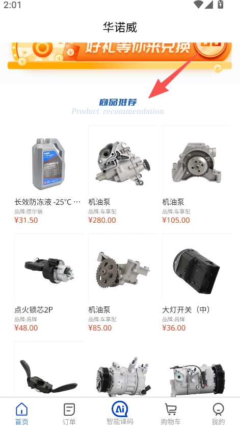 拥有商品推荐浏览的功能,用户可以查看商品推荐板块,从中挑选出符合自身需求的汽车配件。