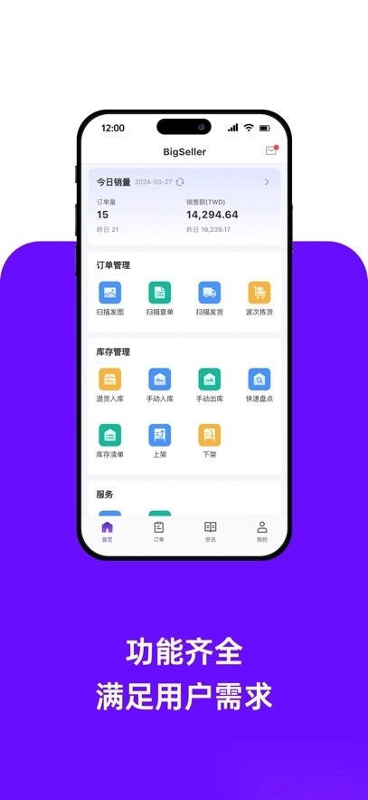 BigSeller是一款为电商卖家量身打造的移动端ERP管理工具,可对接多个电商平台,具备订单管理、库存查询、面单打印、商品上下架、快速盘点等丰富实用功能,助力卖家高效处理日常运营工作,达成移动办公,实时掌握店铺动态。