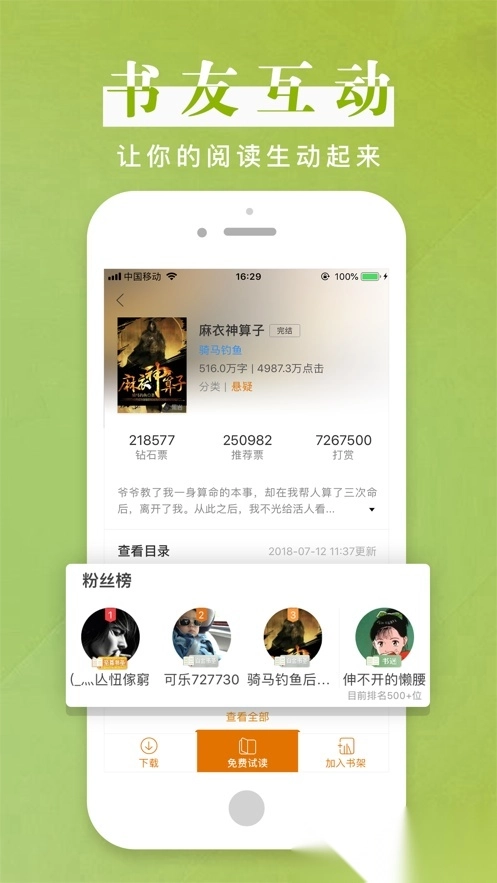 作为公司旗下的移动阅读应用,它拥有海量免费小说资源。