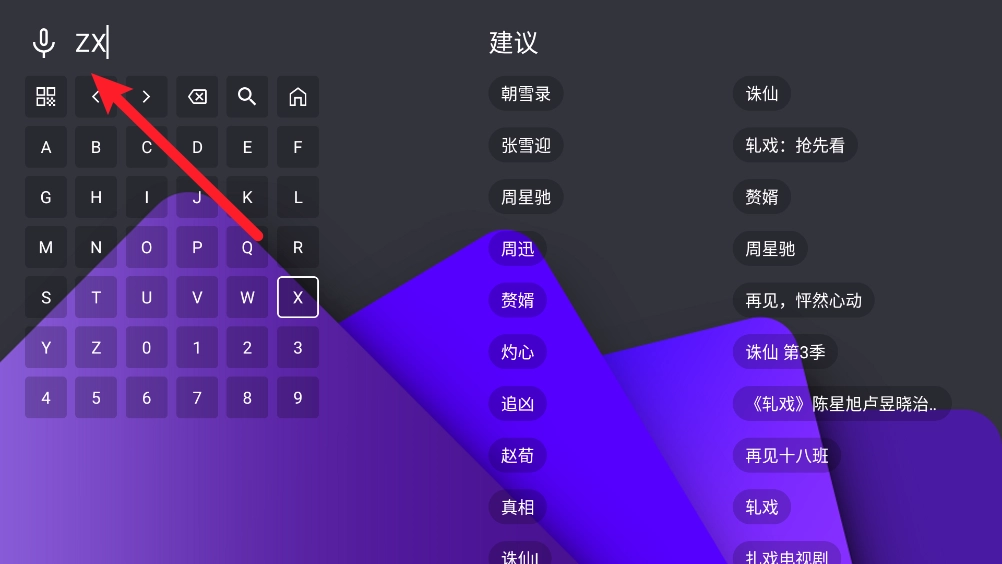 在搜索框中输入首字母进行搜索所需观看的资源。