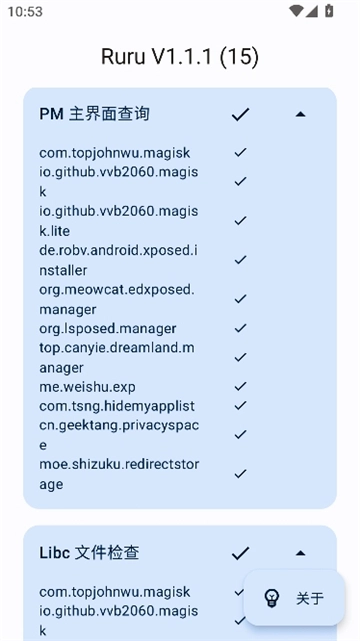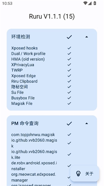 ruru环境检测是一款内存占用低却功能十分强大的手机智能检测工具,借助它用户能够对手机内各个功能模块开展环境检测,通过排查异常数据来保障手机系统安全。该软件本身没有任何广告,用户无需解锁root权限就能使用,有需求的小伙伴快来体验ruru环境检测吧。