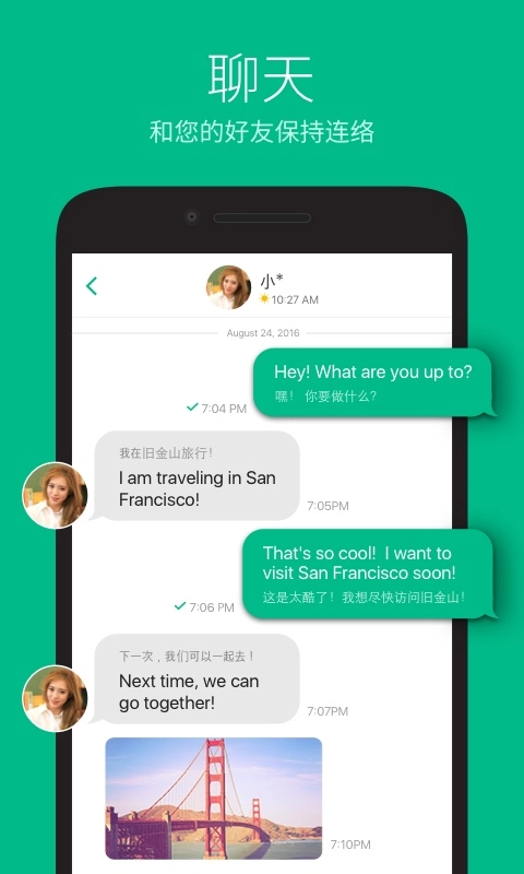 智能匹配功能借助智能算法,把用户和全球各地的陌生人精准匹配起来,从而达成跨文化的交流互动。
