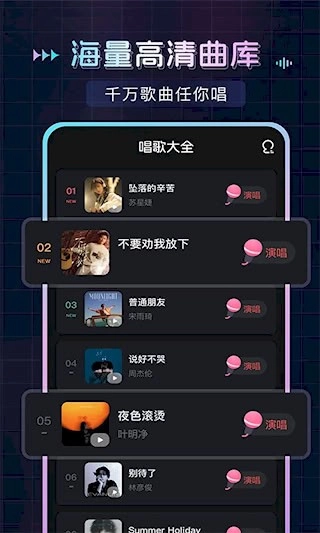 曲库更新:我们的曲库紧跟音乐潮流的步伐,会进行定期更新,第一时间把最新的热门歌曲收录进来,确保用户总能唱到当下流行的旋律。