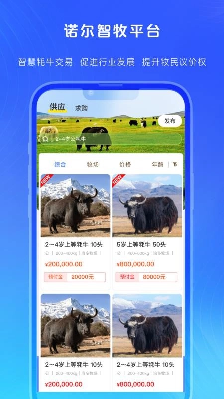 诺尔智牧为用户日常经营管理牦牛养殖提供了便利,在线上既能了解各类补贴与政策,又能实时掌握供应资源,便于高效对接交易;此外,借助软件管理功能,用户可以知晓牦牛牧场的详细情况以及牦牛的活动信息,从而提升管理效率,享受贴心服务,助力养殖和交易从此更加便捷!