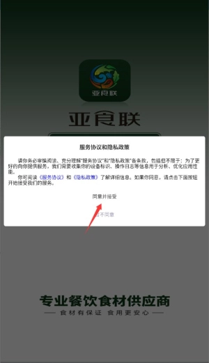 首次打开应用程序时,需要阅读并同意用户服务协议与隐私条款,点击确认按钮后即可进入主界面。