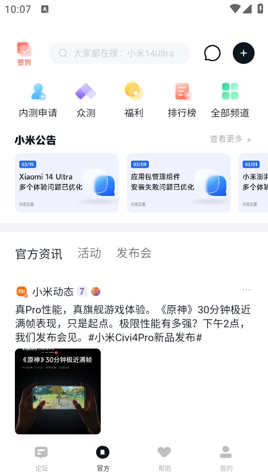 小米社区作为小米用户的专属内测平台,用户在这里可以便捷获取最新系统版本的测试资格,还能直接通过平台向小米研发团队反馈意见建议。此外,众多小米爱好者也会在平台上与用户共同交流手机使用心得,助力用户解锁更丰富多元的玩机乐趣。