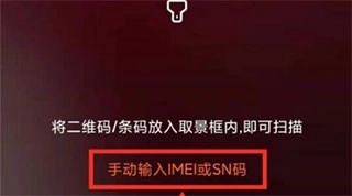 打开扫一扫界面后,点击【手动输入IMEI或SN码】选项。