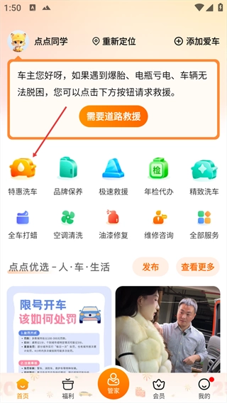 在首页,点击【特惠洗车】选项。