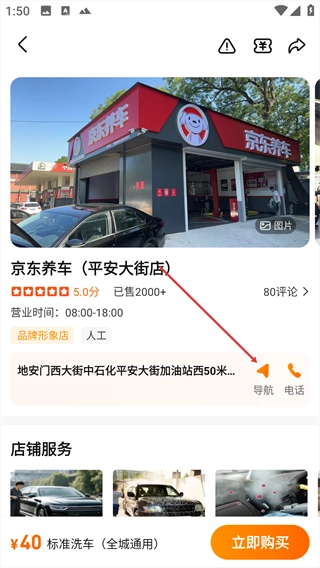 点击【导航】按钮获取前往店铺的路线。