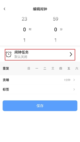 这里可以通过选择甩甩或数学题的方式来强化闹钟,选定后保存闹钟就可以了。