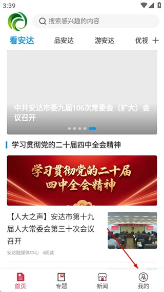 在安达融媒首页点击底部我的选项,进入个人页面。