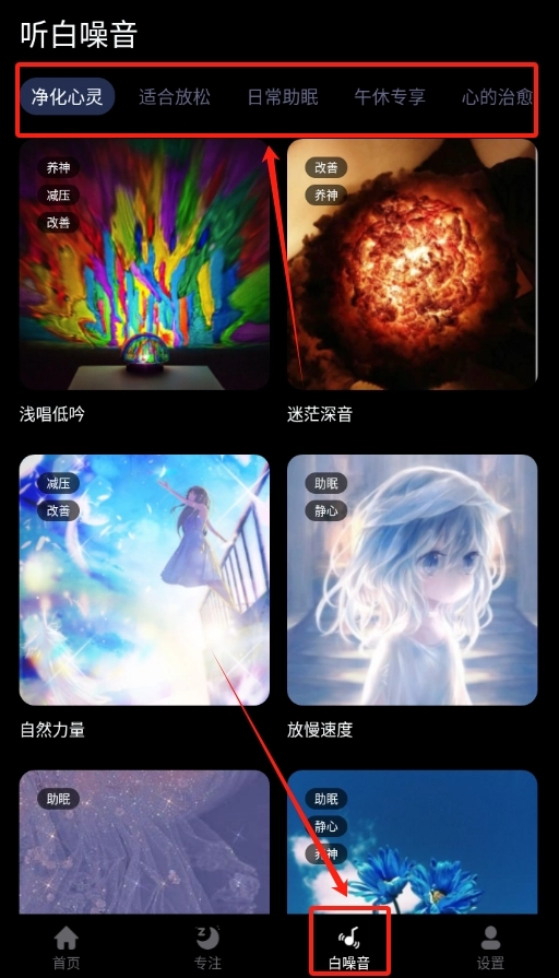 当需要借助音频进行冥想时,在资源页面里挑选合适的音频并点击播放就能使用了。