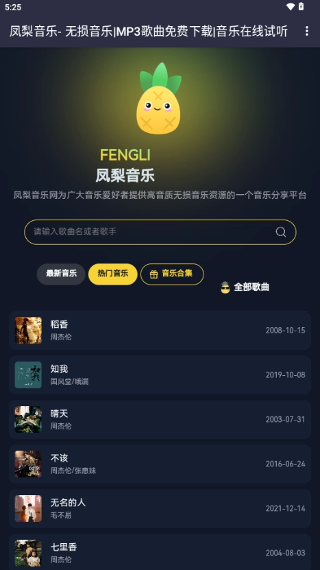 凤梨音乐专注音乐播放的服务,让用户能够通过软件随时随地收听海量热门歌曲音乐。软件信息