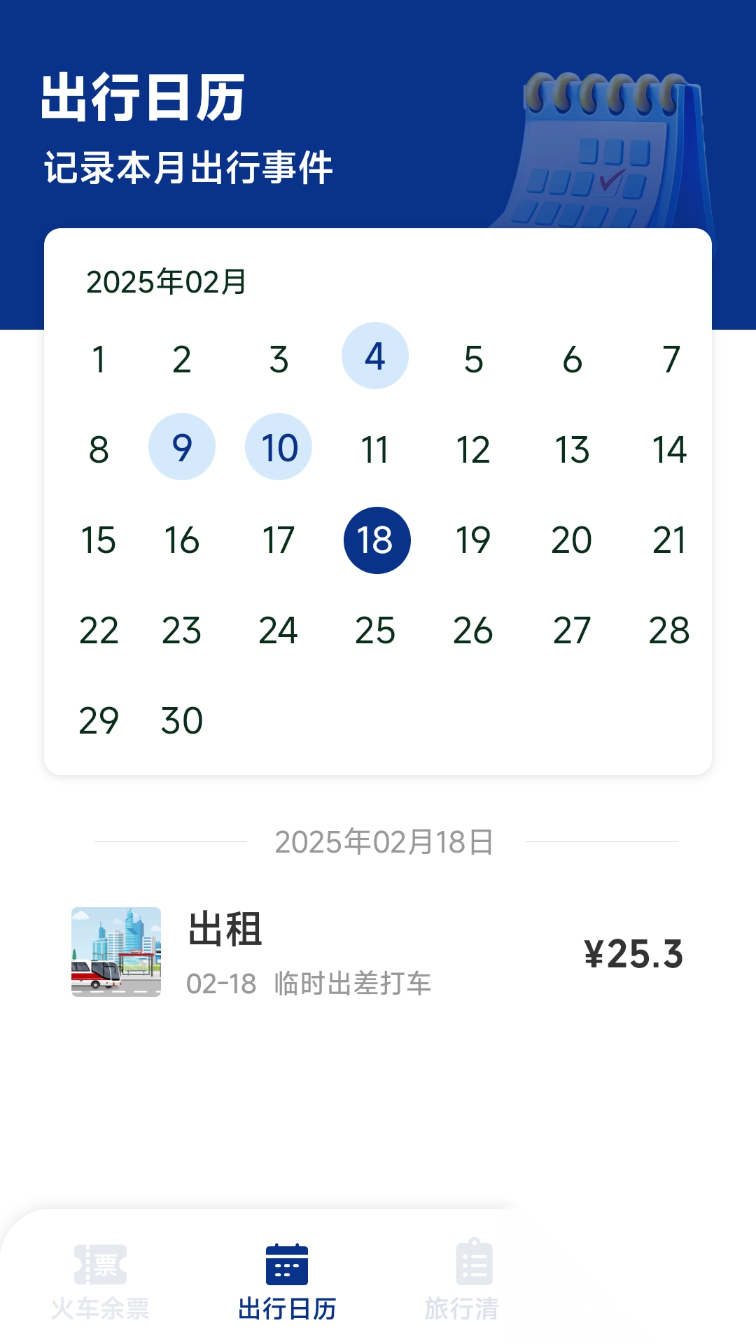 【火车票查询】填写出发地、目的地与出行日期,就能查询车次、余票、票价等信息,还能按照时间、席别等条件进行筛选,便于快速找到合适的车次。 【购票出行指南】汇总了购票、乘车、退票等各环节的注意事项,助力您清晰了解出行流程,减少行程中的疑问与不便。 【携带物品清单】您可提前列出需要携带的物品,在出行前逐一核对确认,防止遗漏重要物件。