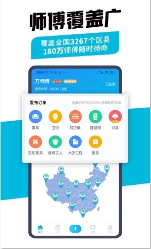 师傅覆盖范围广:全国有120万优秀师傅,覆盖2853个区县,找好师傅很轻松。