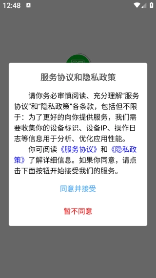 并安装后打开软件,进入时需先同意相关隐私权限。