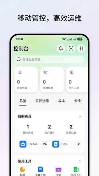 华为云移动端管理工具,助力用户突破地点与设备的限制,更便捷地管控云端资源。其管理界面简洁直观,各类功能模块依据资源类型分区呈现,全面覆盖主流云资源管理场景,支持实时查看资源状态、执行基础操作以及接收告警信息,真正实现云端资源的随时随地管控。