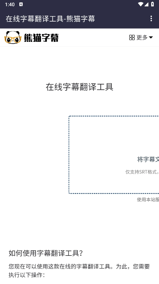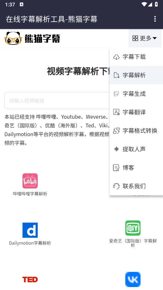 进入后,点击“更多”选项,这里面包含了字幕、字幕解析、字幕生成以及翻译等功能。