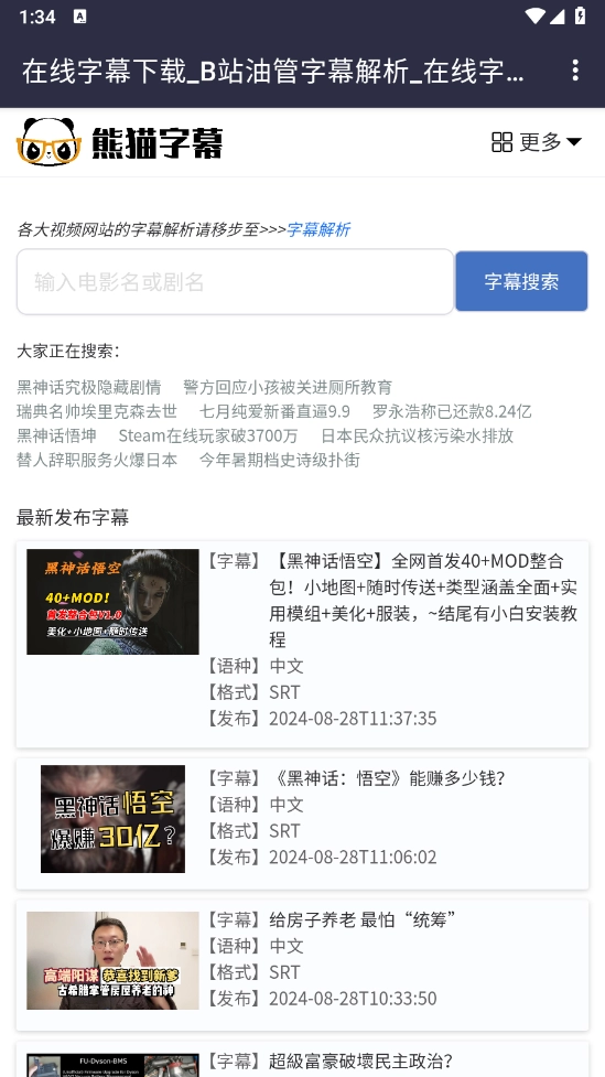 比如小编挑选的字幕,在搜索框里输入电影名或者剧名。
