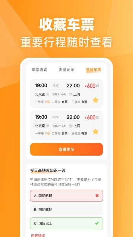 你可以在此处收藏车票,方便随时查看车票信息并进行管理。