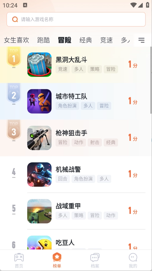 “榜单”页面是根据当前热度将游戏进行排序。