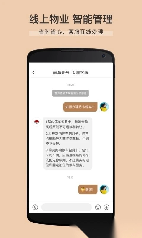 在线处理物业公告、报事报修、联系专属客服,享受智能化管理,省时省力。