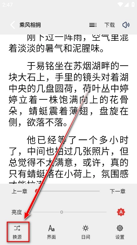 阅读过程中要是碰到章节缺失或者加载速度慢的情况,点击“换源”按钮就能切换到其他书源接着阅读。