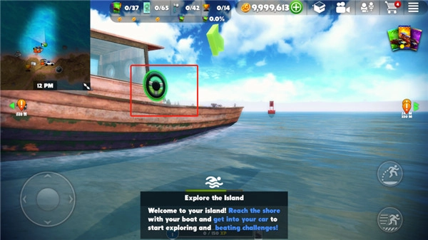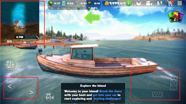 4、接着依照蓝色方向标把船驶向岸边,随后上车。