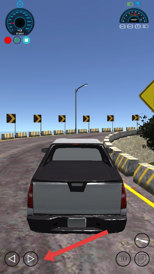 1. 打开游戏后,先熟悉一下位于左下角的方向按键,了解如何通过它们实现前进与后退。接着,点击绿色的启动按钮,让皮卡车启动并起步,逐步适应整个驾驶操作流程。