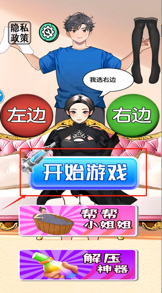 2. 点击右侧按钮协助男生做出选择,接着点击显眼的蓝色“开始游戏”按钮,从而进入游戏。